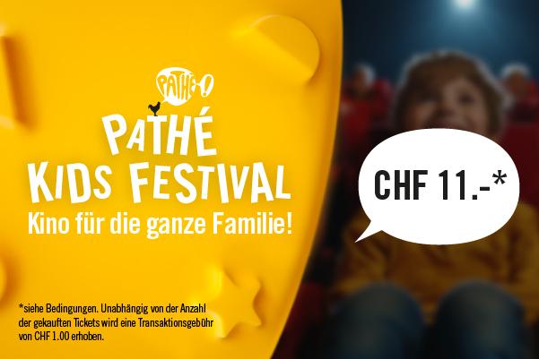 Es ist Zeit für einen Kinobesuch mit der ganzen Familie! Das Pathé Kids Festival kehrt während der Schulferien zurück. Eine breite Auswahl an Filmen zum Einheitspreis von CHF 11.-* pro Person und Vorstellung von Montag bis Freitag.