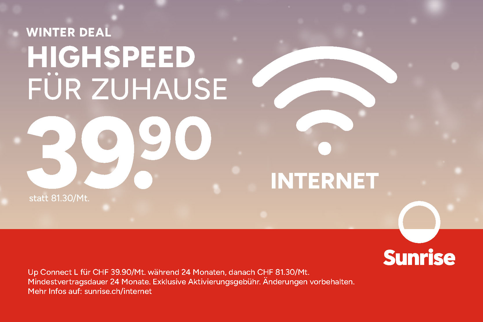 Sunrise highspeed Internet für zuhause mit 50% Rabatt: 39.90 statt 81.30 für 2 Jahre!