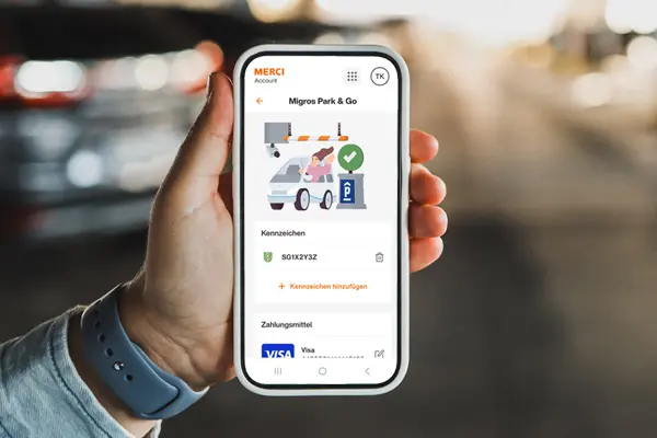 - über den Migros Park & Go Service > dazu hinterlegen unsere Kundinnen und Kunden in ihrem Migros Account einmalig ihr Kennzeichen und wählen ihr bevorzugtes Zahlungsmittel aus.