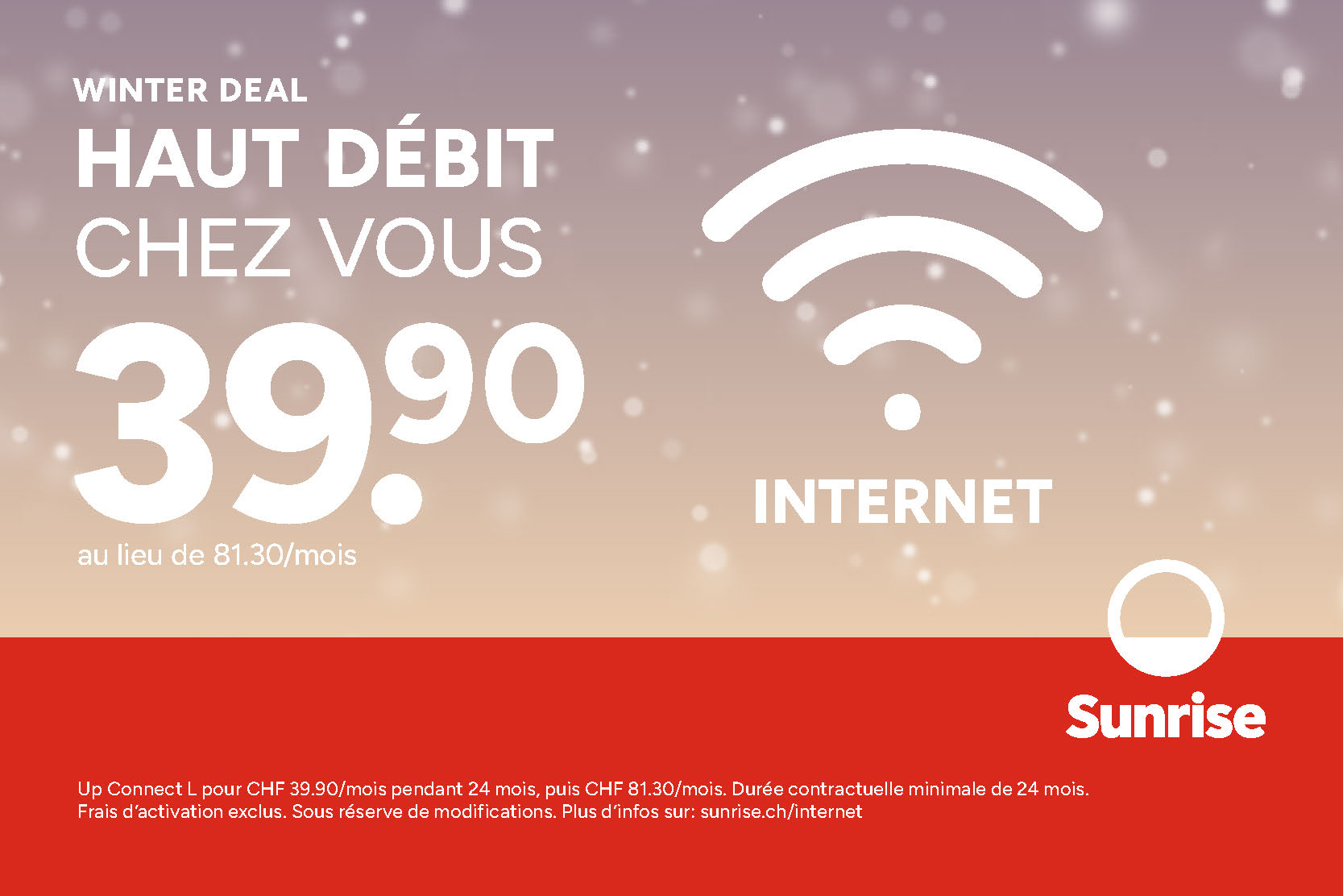 Haut débit chez vous avec 50% de rabais: 39.90 au lieu de 81.30 pendant 2 ans!