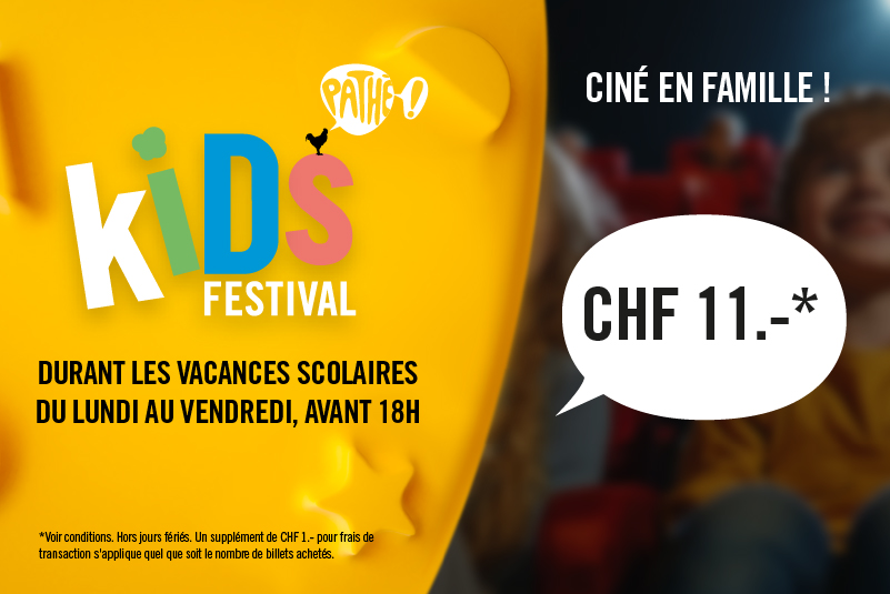 Tarif unique de CHF 11.-* par personne et par séance sur une sélection de films enfants.