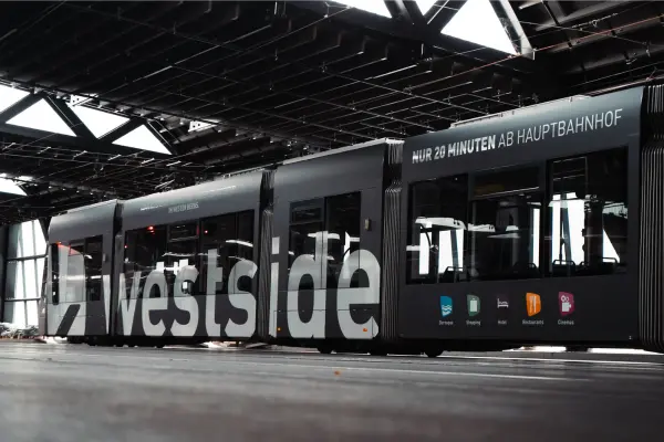 Westside est synonyme de diversité, d’expériences et d’inspiration – et c’est exactement ce que nous souhaitons transmettre avec ce tram. La mise en œuvre de ce projet a nécessité beaucoup de travail préparatoire et de passion, car il était important pour nous de présenter Westside comme une marque rayonnante et facilement reconnaissable.